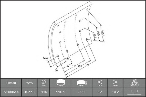 Накладки гальмівні WVA 19553,19716, 19717 STD 65212900A8RV ROULUNDS аналог 1906413, 1906432