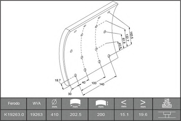 65212100A8 ROULUNDS Накладки гальмівні барабанні (компл. на вісь) 19263STD 410х200 станд. IVECO EUROSTAR, EUROTECH MH, E