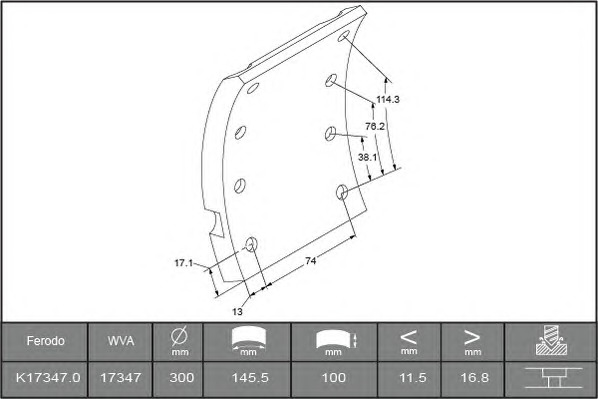 02.BPW.0003-880408 SP Колодка гальмівна (метал) без ролика BPW ECO >1995 300*200mm успішно доданий в кошик!